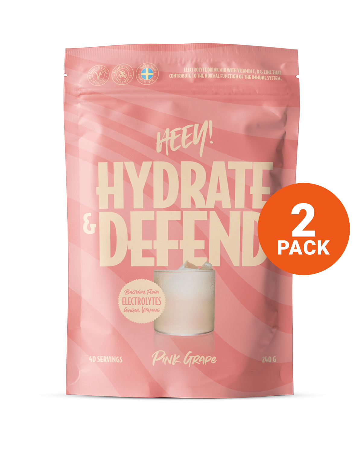 Heey! Hydrate & Defend Electrolytes+Probiotic Pink Grape 2x240g