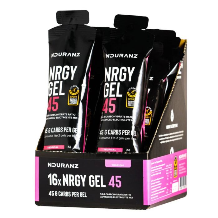 Nduranz Nrgy Unit Gel 45 - Energi-gel for løping, Pakke med 16 stk, Hvit