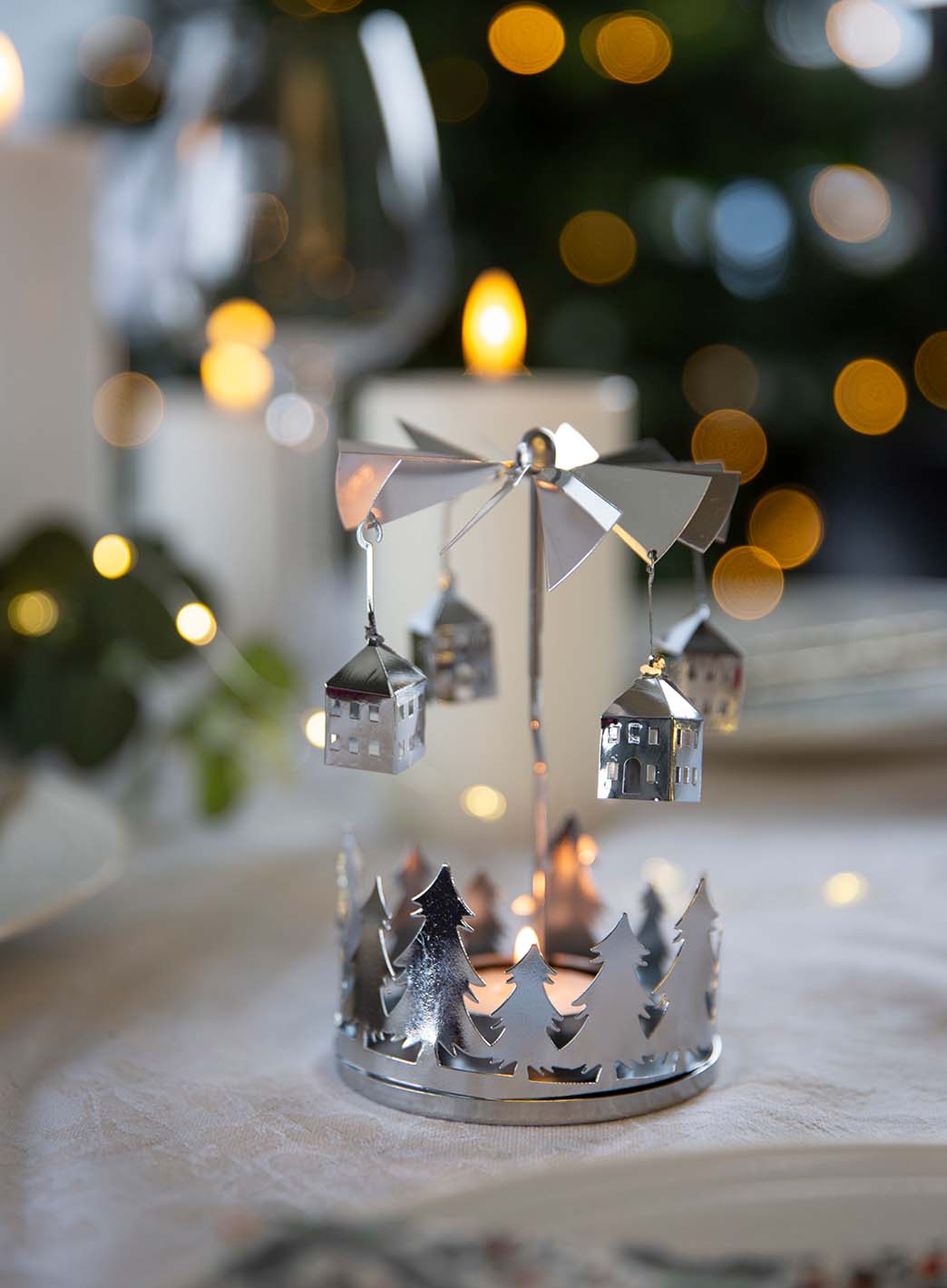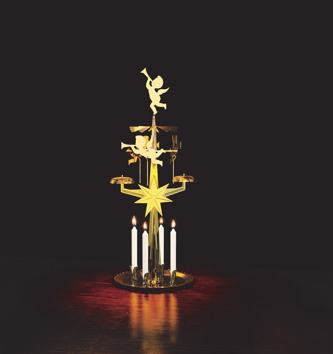 Englespill, messing, med 4 lys