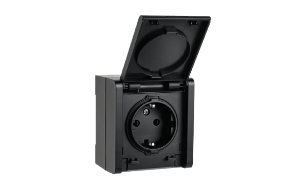 Stikkontakt enkel påvegg Sort IP44 AquaBest