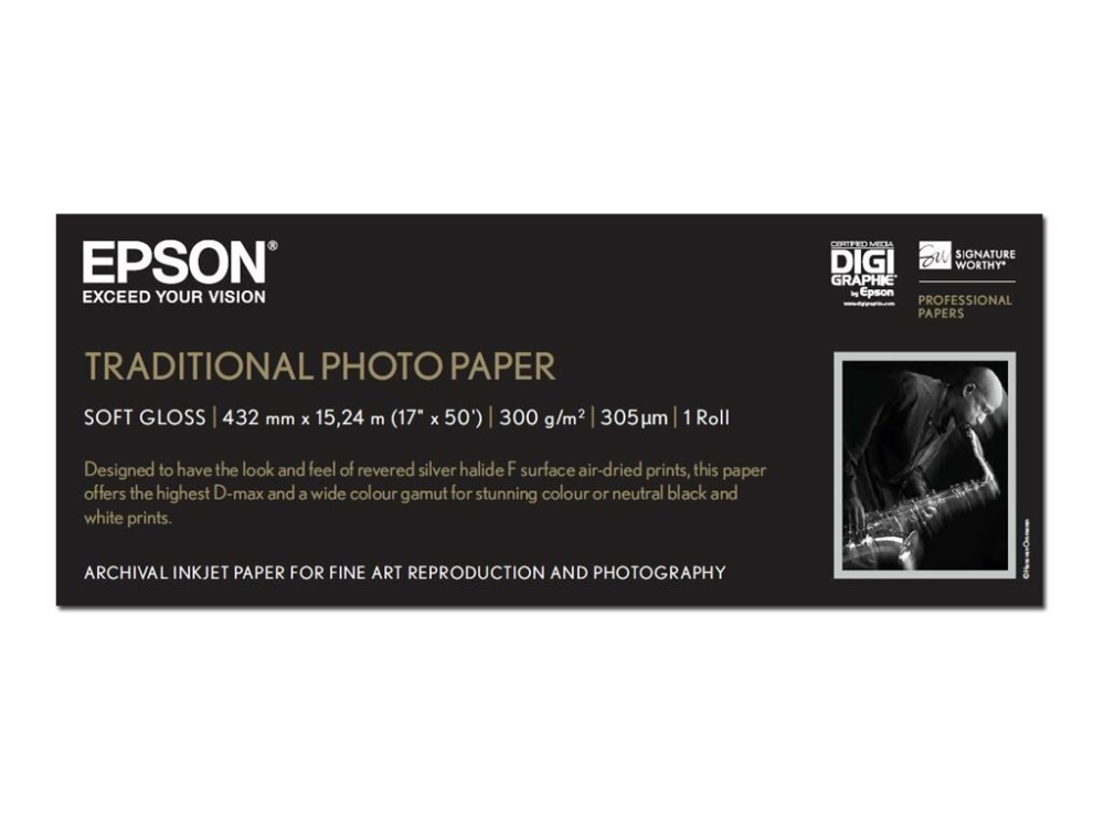 Epson Traditional Photo Paper - Rull (43,2 Cm X 15 M) - 300 G/M² - Fotopapir - For Surecolor P5000, P800, Sc-P10000, P20000, P5000, P7500, P900, P9500