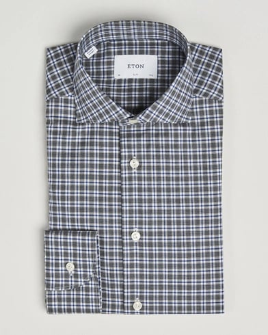 Eton Slim Fit Checked Wrinkle Free Flannel Shirt Dark Grey