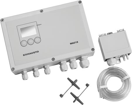 Exhausto Konstattrykregulator Mac12 Med Analog Xtp-Senor Med 2 Meter Slange Og Målesonde For Ac- Eller Ec-Motor.