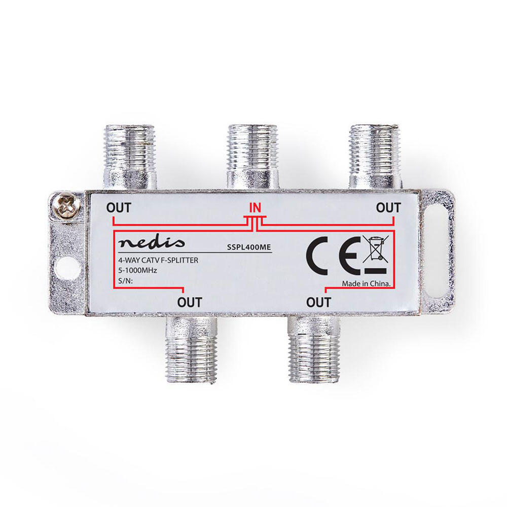 QNECT Antenna TV-splitter F-connector ClassA 1-in/4-out