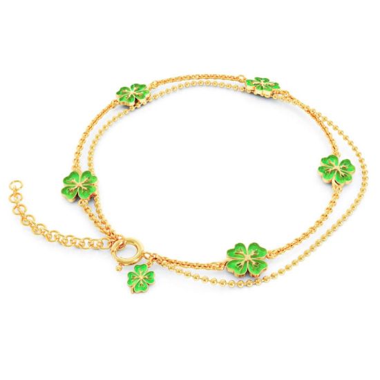 Armbånd i forgylt sølv med grønn firkløver. LIV - 750714