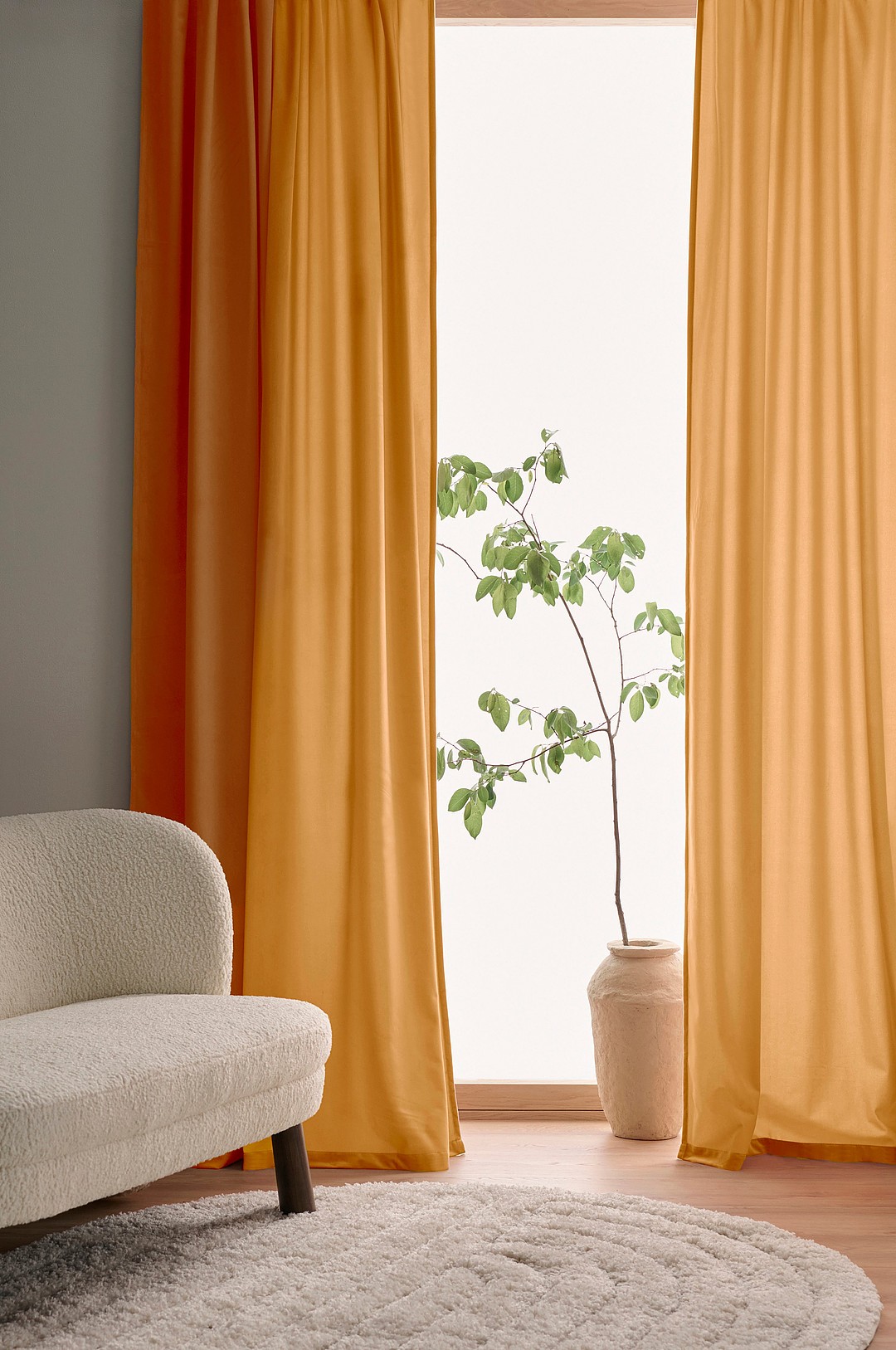 Ellos Home - Gardin med multibånd Nora i fløyel 2-pk - Gul
