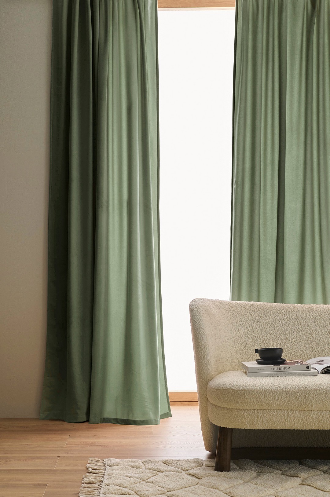 Ellos Home - Gardin med multibånd Nora i fløyel 2-pk - Grønn
