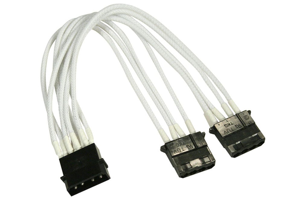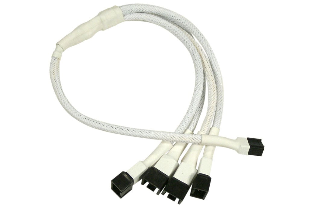 Forgrener, 3 pins vifte til 4x3 pins vifte, kabelstrømpe, 30 cm, hvit