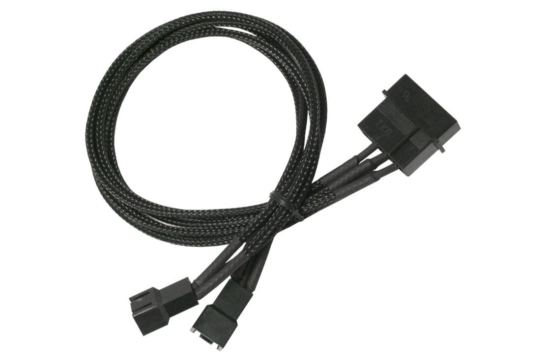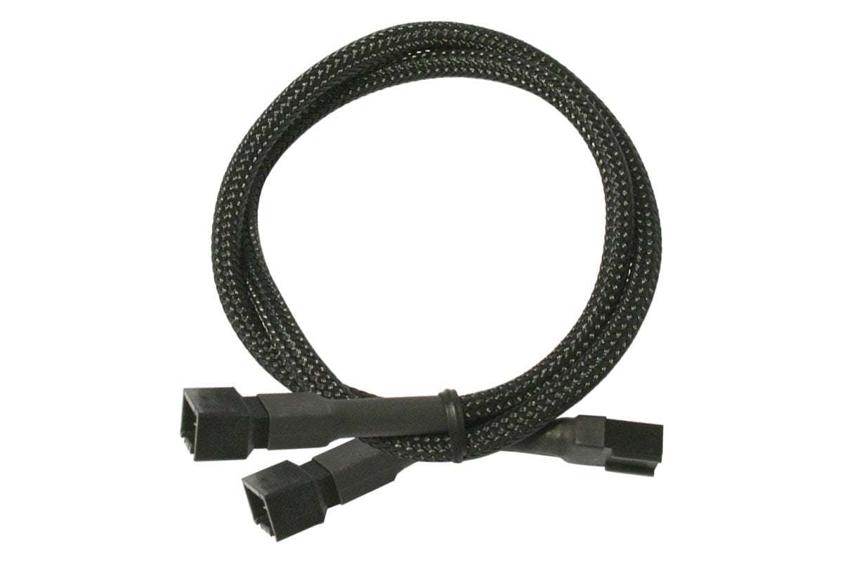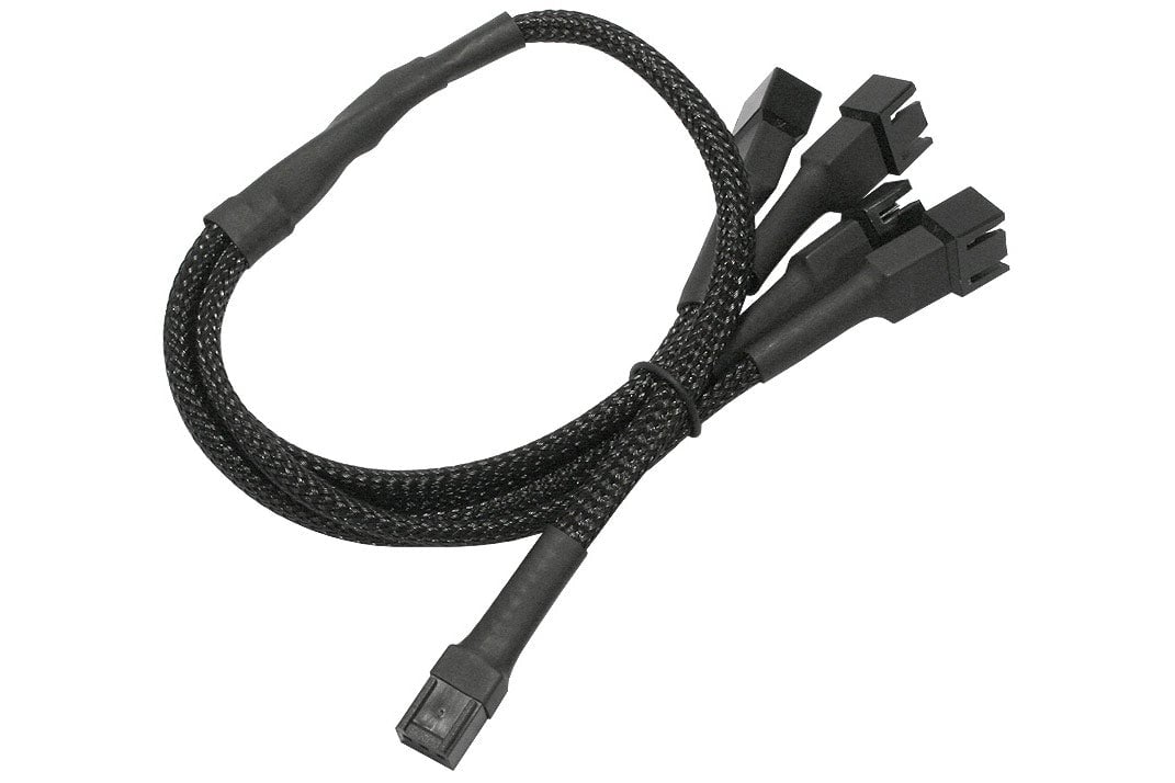 Forgrener, 3 pins vifte til 4x3 pins vifte, kabelstrømpe, 60 cm, sort