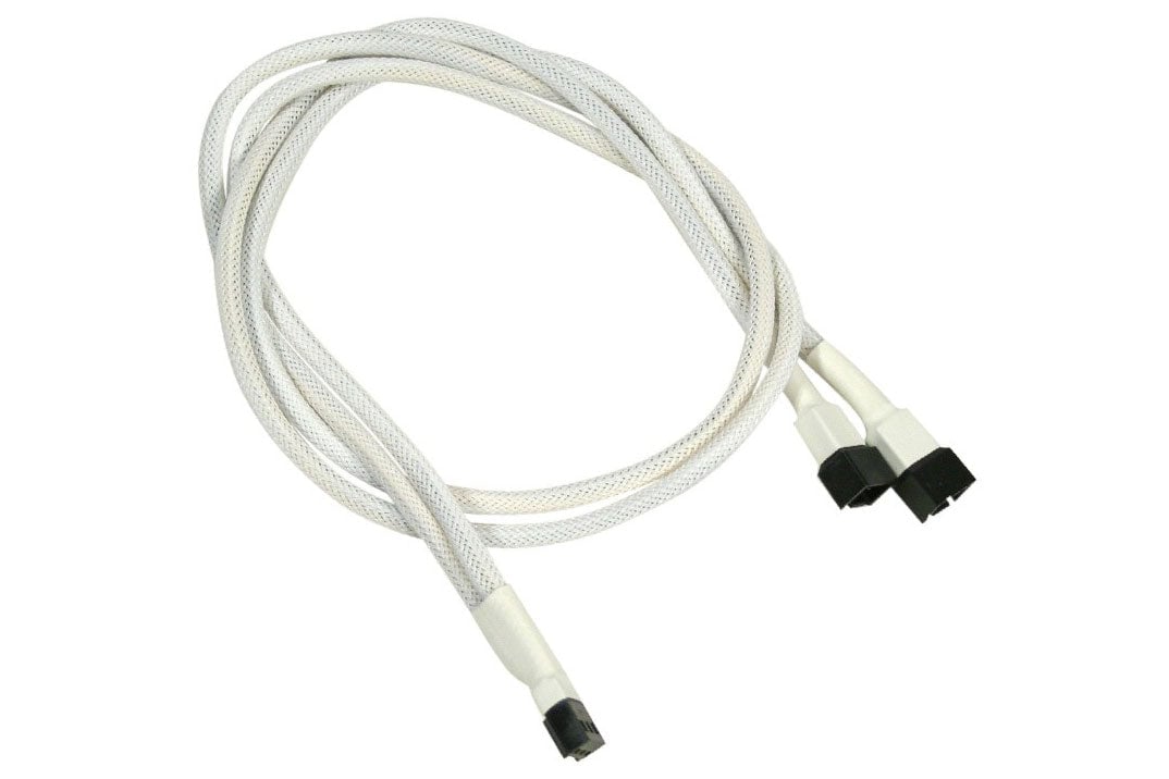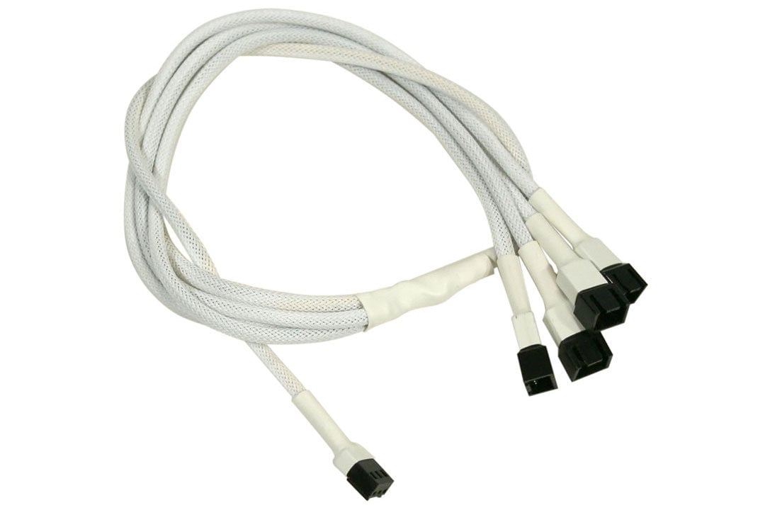 Forgrener, 3 pins vifte til 4x3 pins vifte, kabelstrømpe, 60 cm, hvit