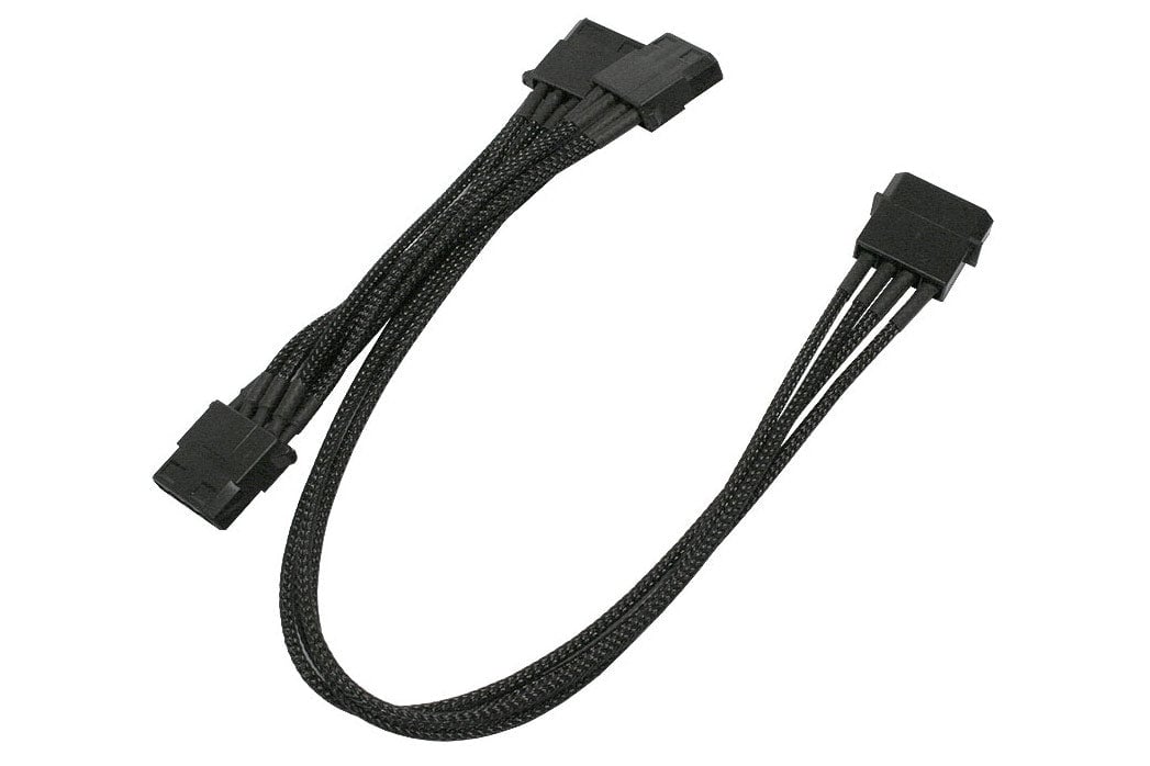 Forgrener, 3 pins vifte til 4x3 pins vifte, kabelstrømpe, 30 cm, sort