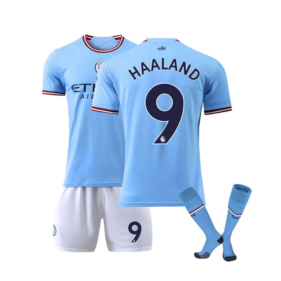 Fotballtrøye for barn og voksne nummer 9 blå/hvit/rød