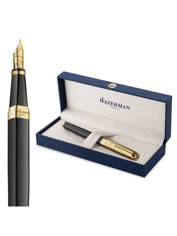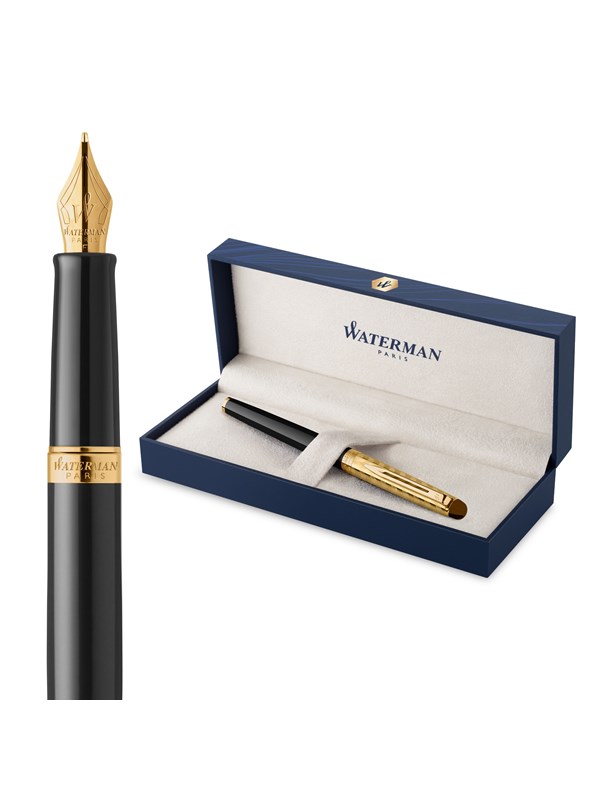 Waterman Hémisphère Fountain Pen | Gloss Black with 23k Gold Trim | Fine Nib | Blue Ink | Gift Box