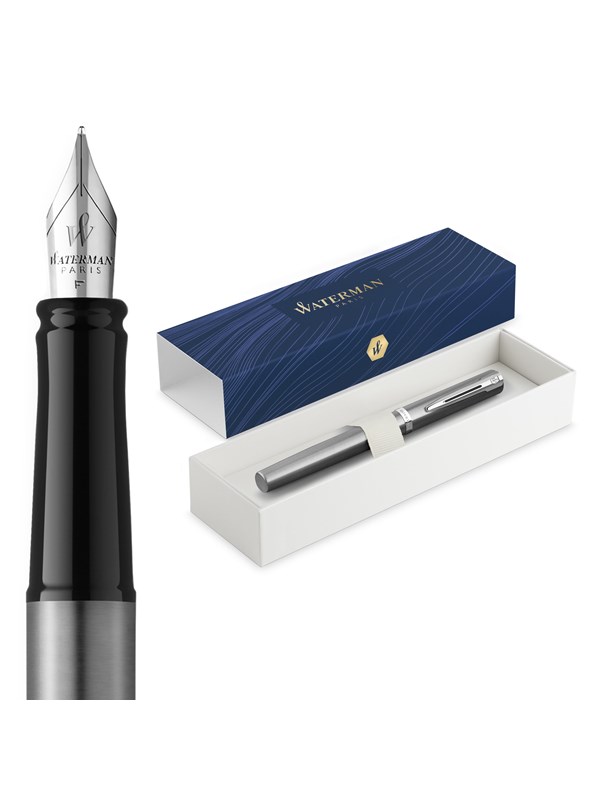 Waterman Allure Fountain Pen | Stainless Steel | Fine Nib | Blue Ink