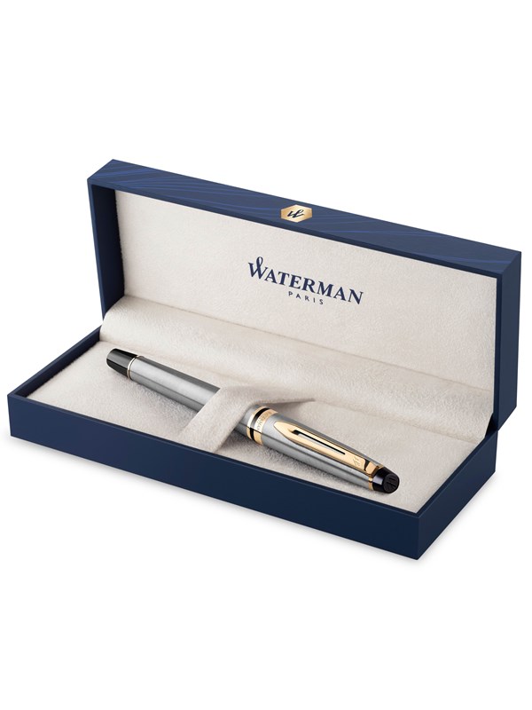 Waterman Expert Fountain Pen | Stainless Steel with 23k Gold Trim | Fine Nib | Gift Box