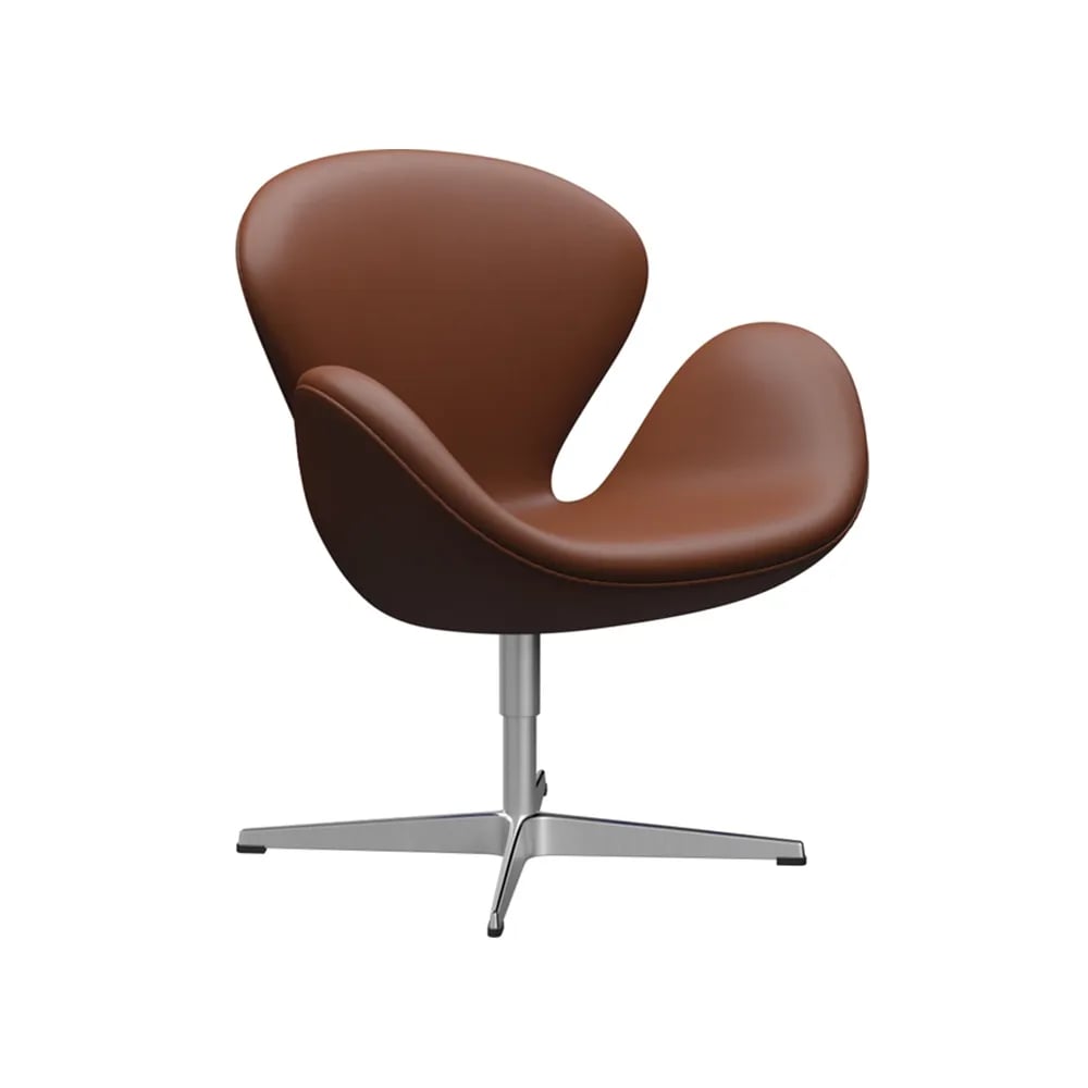 Fritz Hansen Svanen 3320 lenestol lær aura cognac, satinbørstet rustfritt stålrundstativ