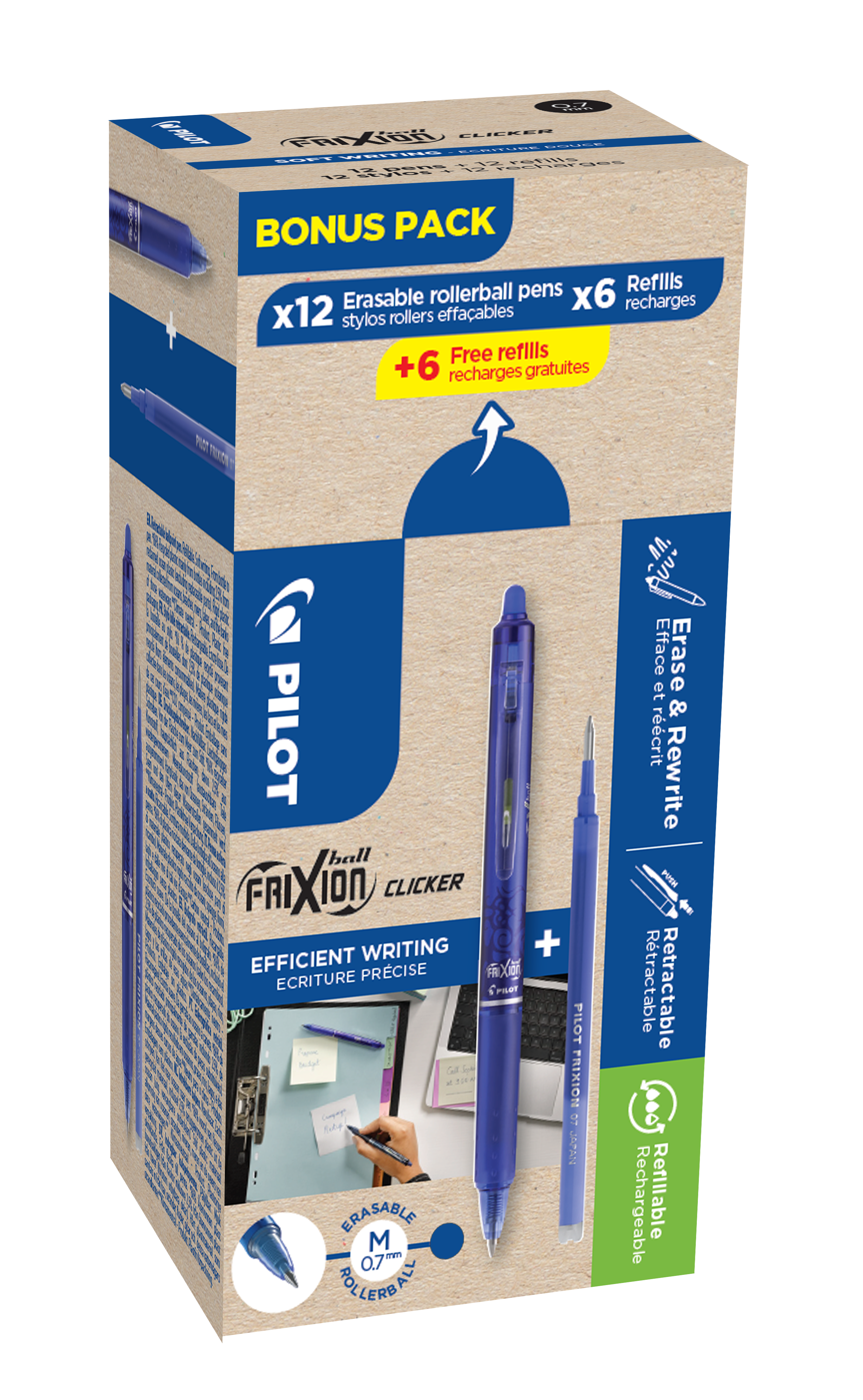 Pilot FriXion Ball Clicker Kulepenn kan viskes bort, 12-pakk Blå