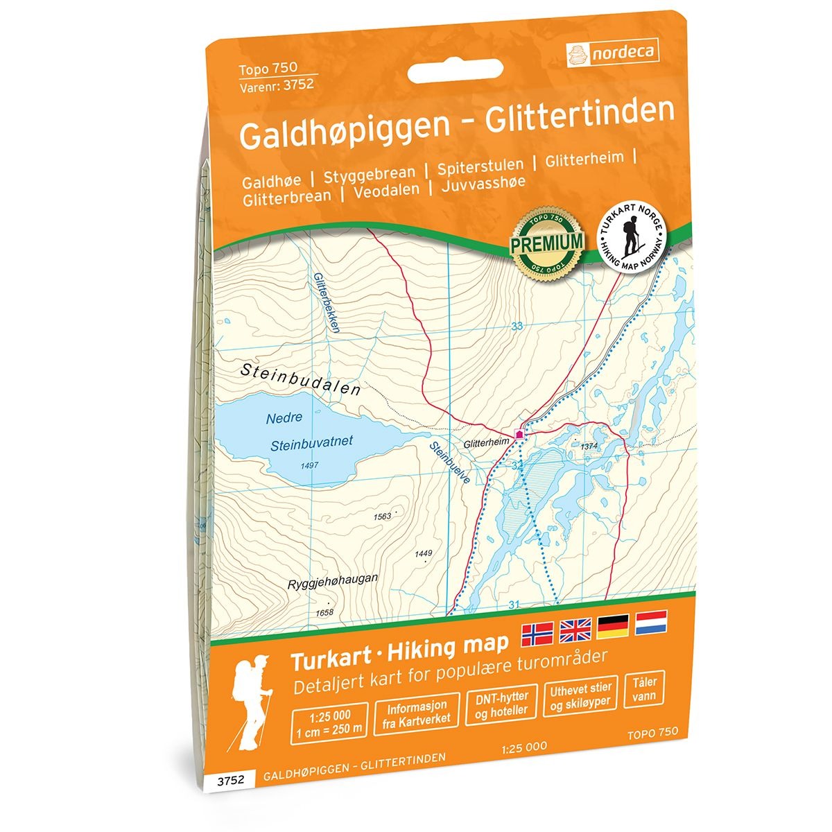 Nordeca Galdhøpiggen - Glittertinden Topo 750 1:25000 turkart 3752 2022