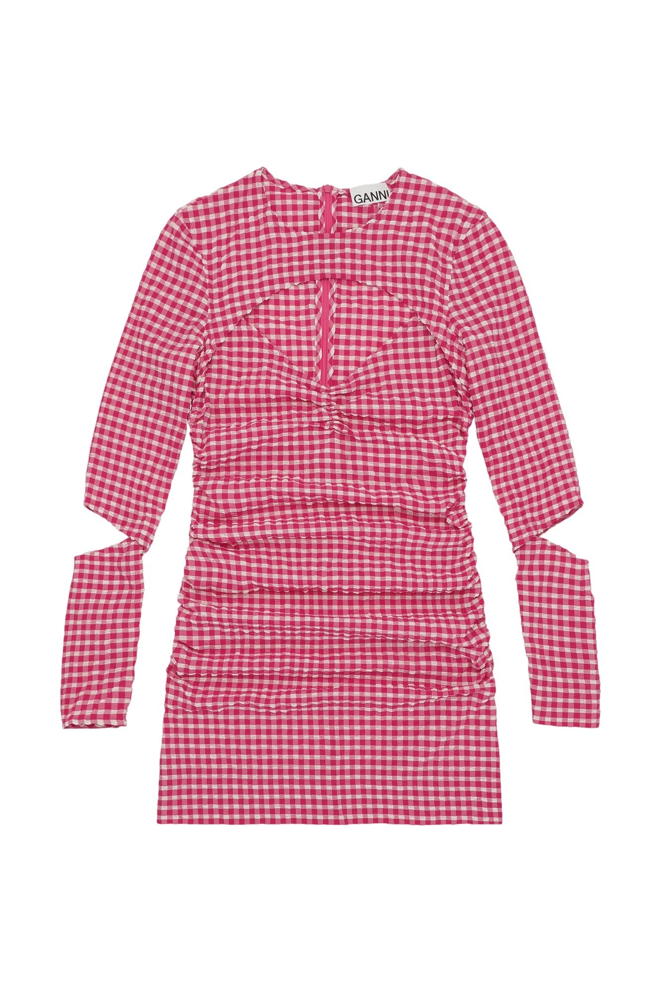 Ganni Stretch Seersucker Cutout Mini Dress Kjole Rød