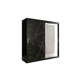 Marmuria Garderob med Spegel 200 cm Marmormönster Svart