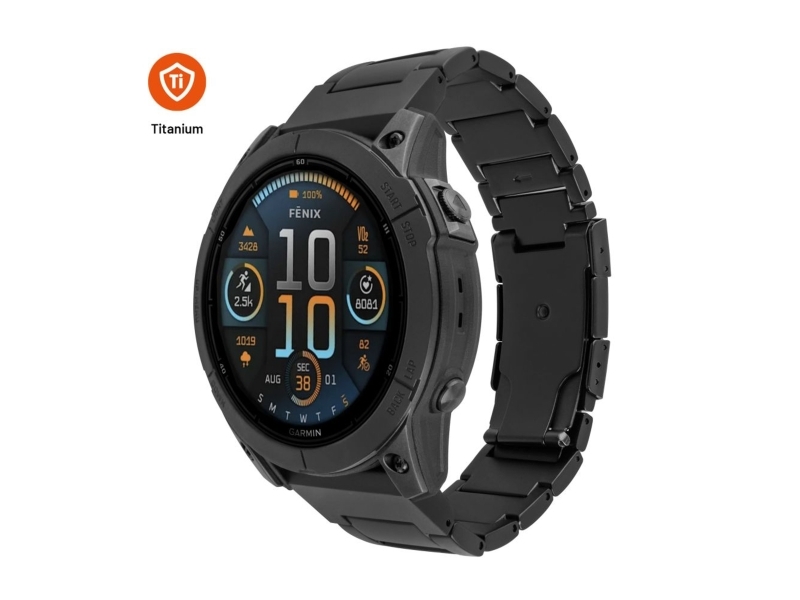 Fixed Titanium Strap, Strap, Smartwatch, Black, Garmin, Quickfit 22Mm, Titanium, Stainless Steel
