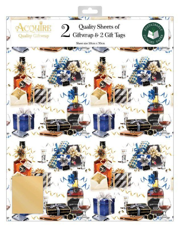 2 stk Rom Alkohol Gavepapir med 2 stk Navnelapper - 50x70cm