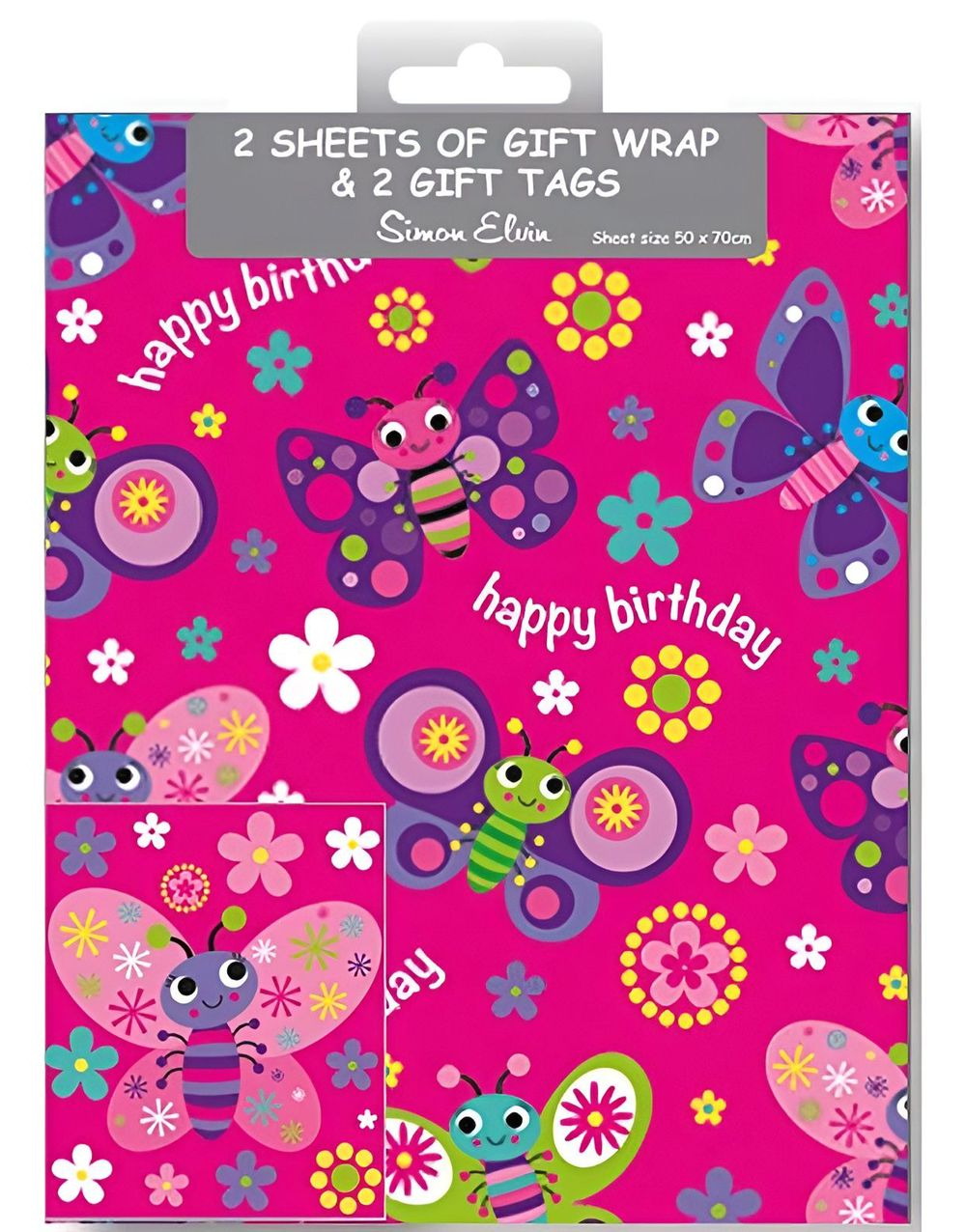 2 stk Sommerfugler Gavepapir med 2 stk Navnelapper - 50x70cm