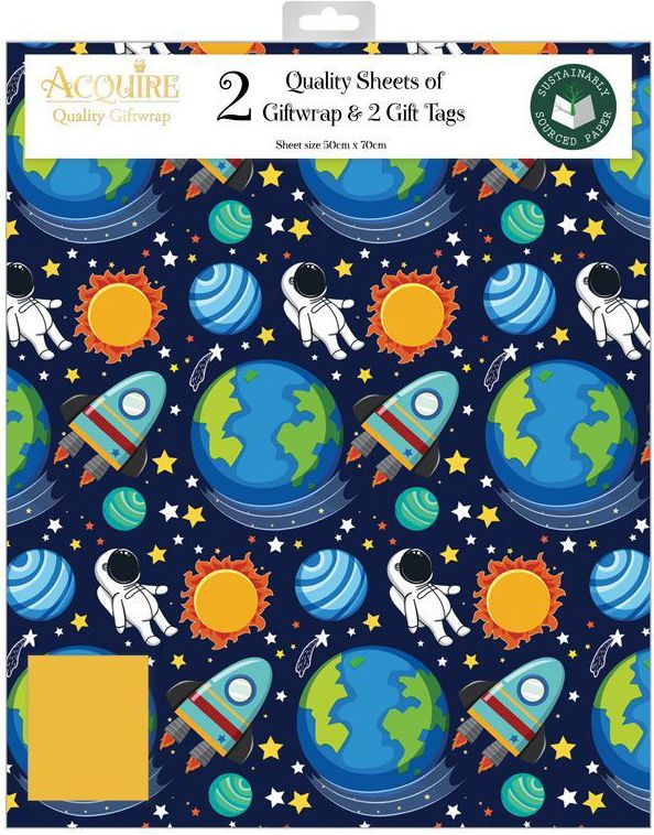 2 stk Romfart Gavepapir med 2 stk Navnelapper - 50x70cm