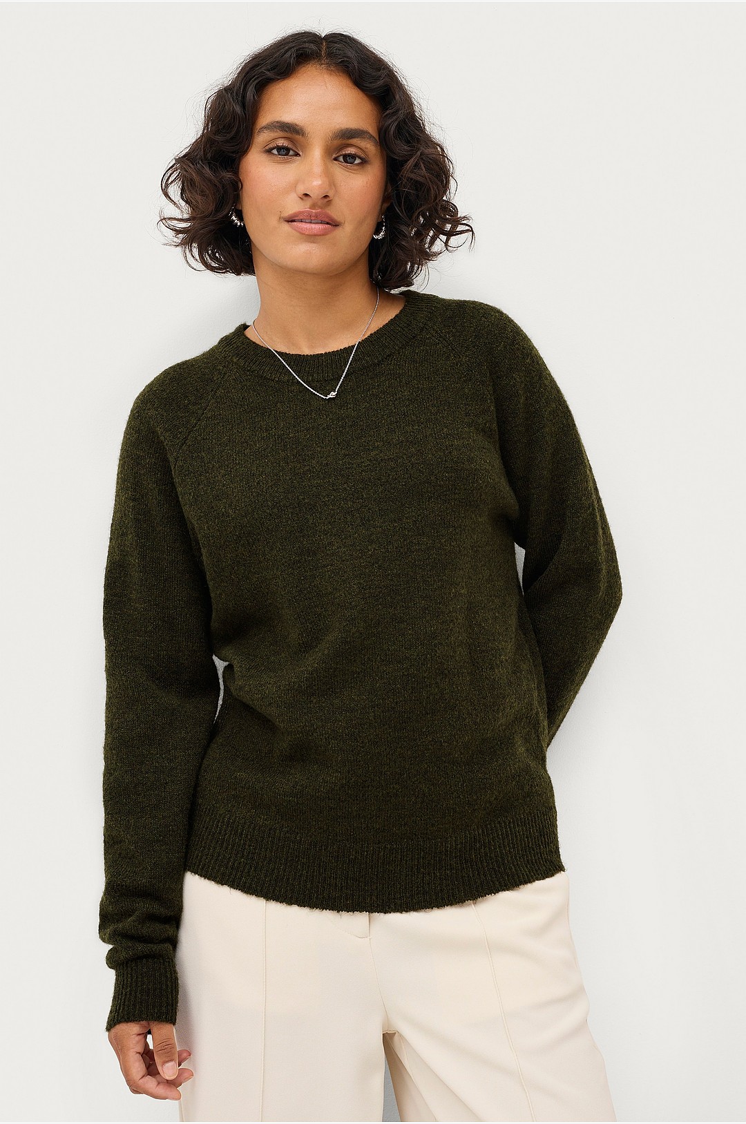 Strikket Genser Med Rund Hals, Grønn