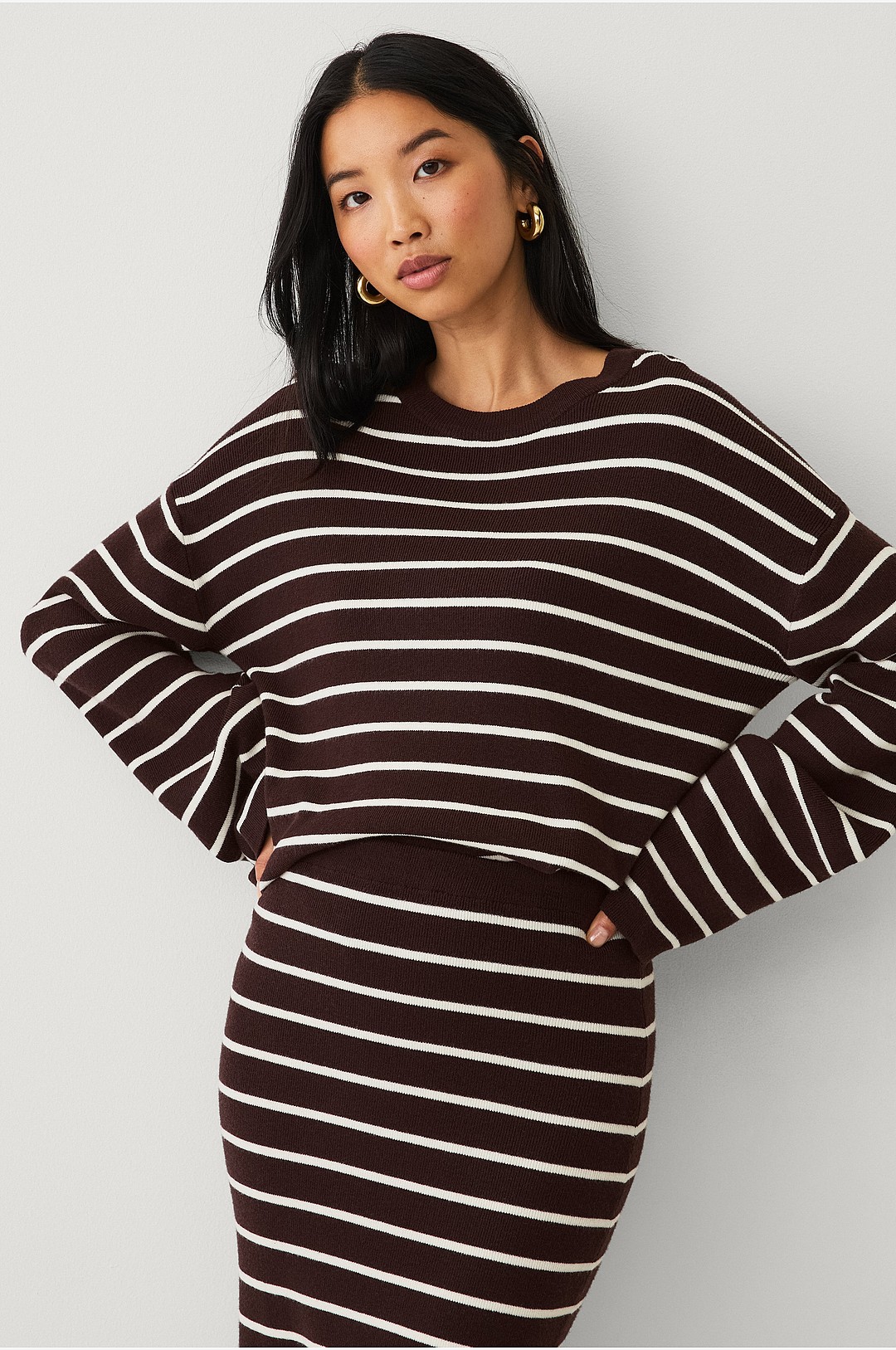 Ellos Collection - Strikket genser med striper - Brun