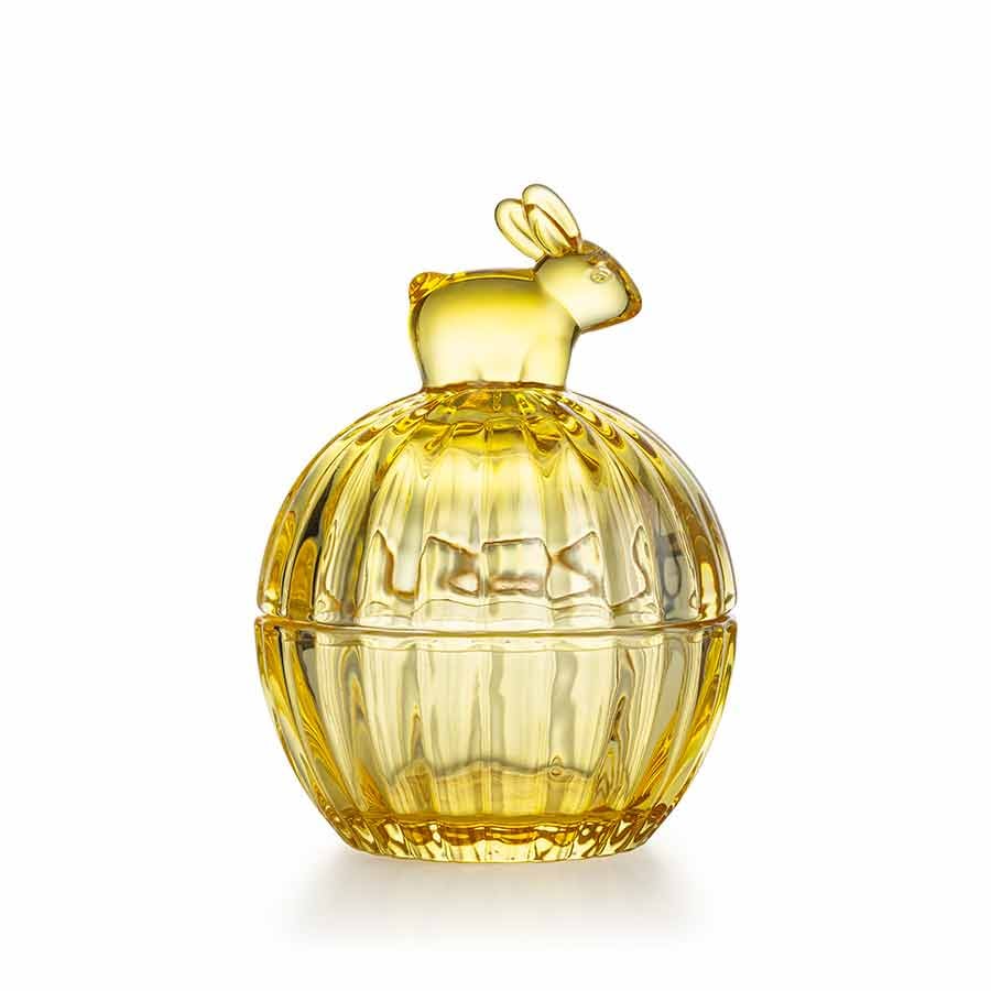 Hadeland Glassverk Glasskål m/Lokk Hare Gul 12,5cm