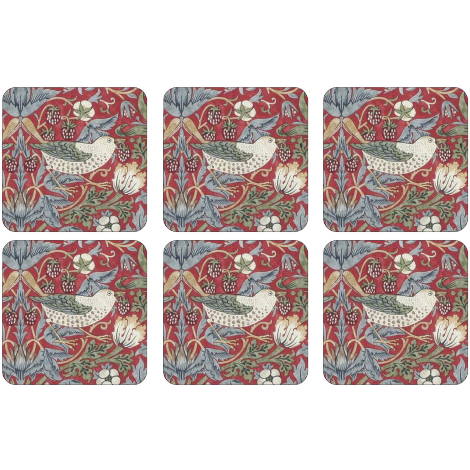 Spode Strawberry Thief Rød Glassunderlag 6-pack