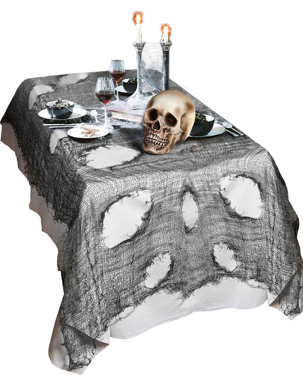 Skummel Dekorasjon til Halloween - Grå Netting 75x180 cm