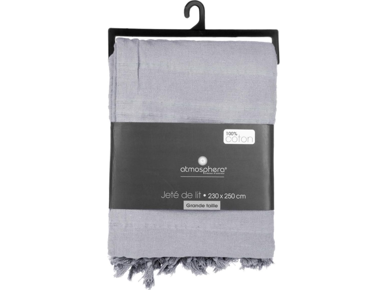 Atmosphera Sengeteppe 230X250 Med Frynser, Grå