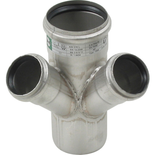 75 x 50 mm x 45° grenrør rustfritt avløp AISI304 ACO