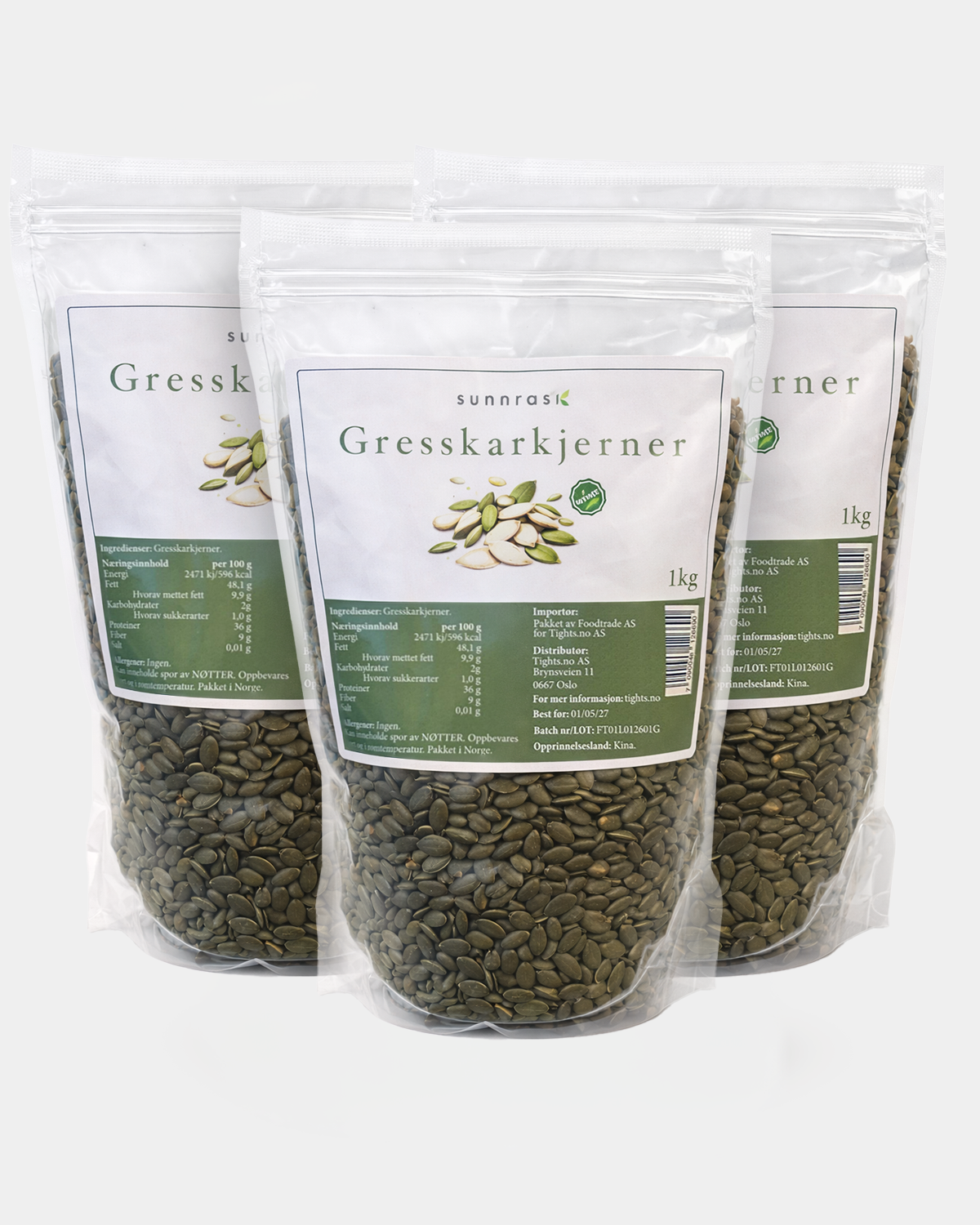 SunnRask Gresskarkjerner 3x1kg