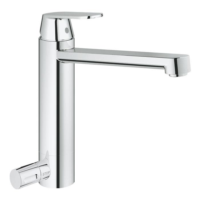 Grohe Bau Edge servantbatteri Med kaldstart og bunnventil, Krom 23759000