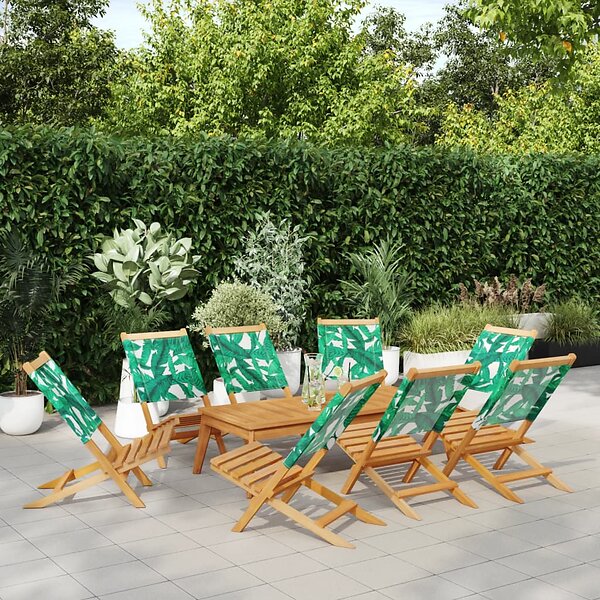 vidaXL Hopfällbara trädgårdsstolar 8 st grön tyg och massivt trä 3214651