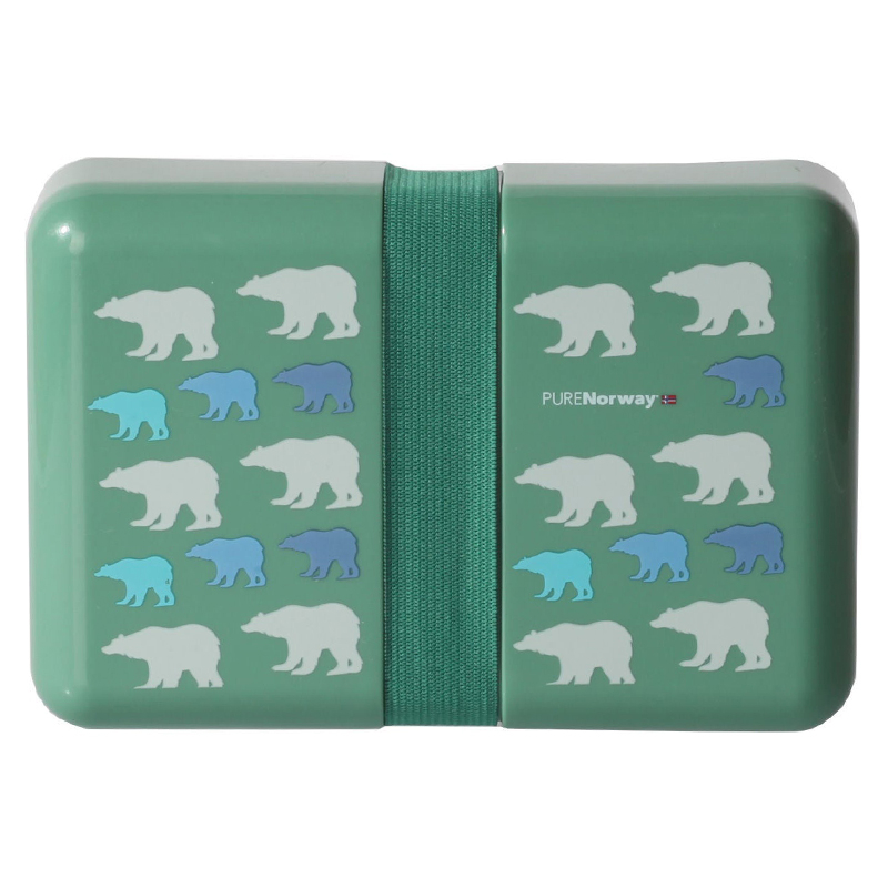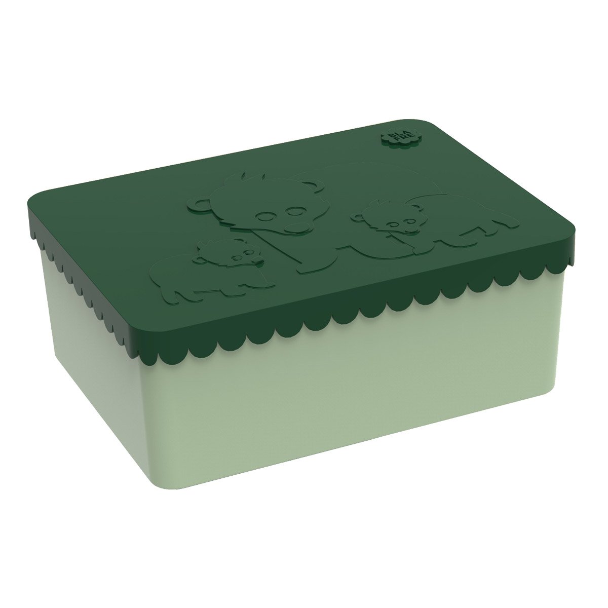 Blafre treroms matboks i plast med bjørner, mørk grønn