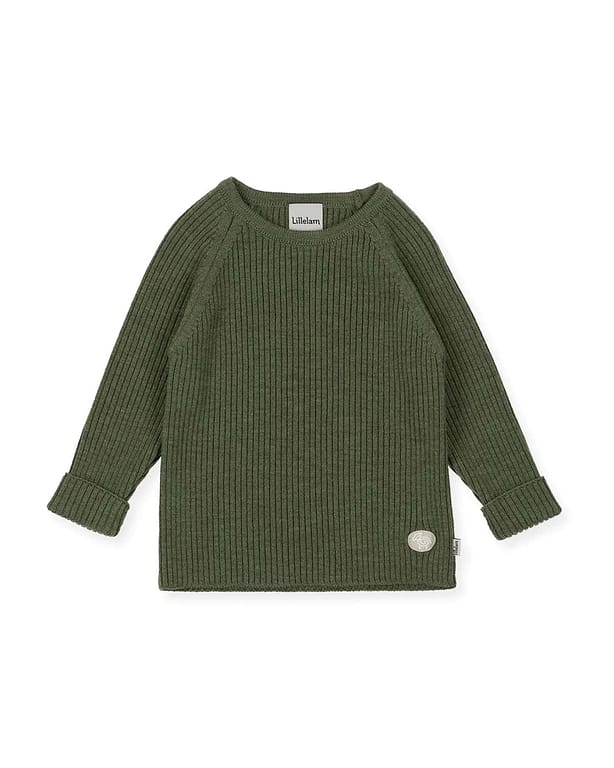 Lillelam Genser Ribb | Ullgenser 100% Merino - Oliven Grønn
