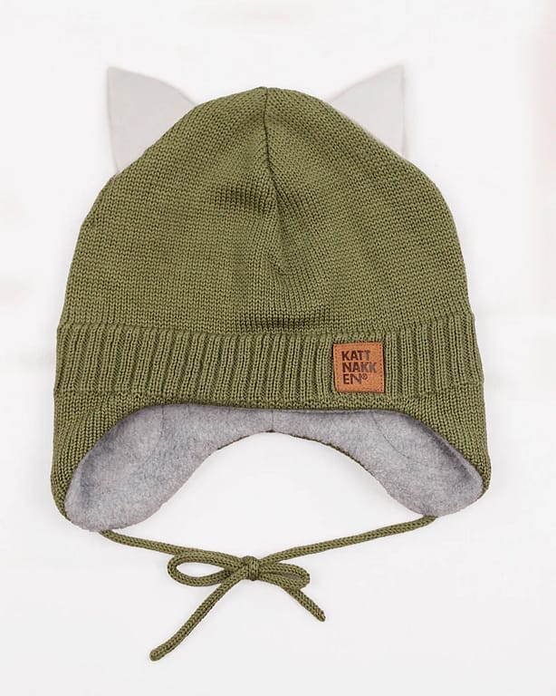 Kattnakken Lue Baby 1-3år | Ullue m/ fleece - Mose, Oliven Grønn