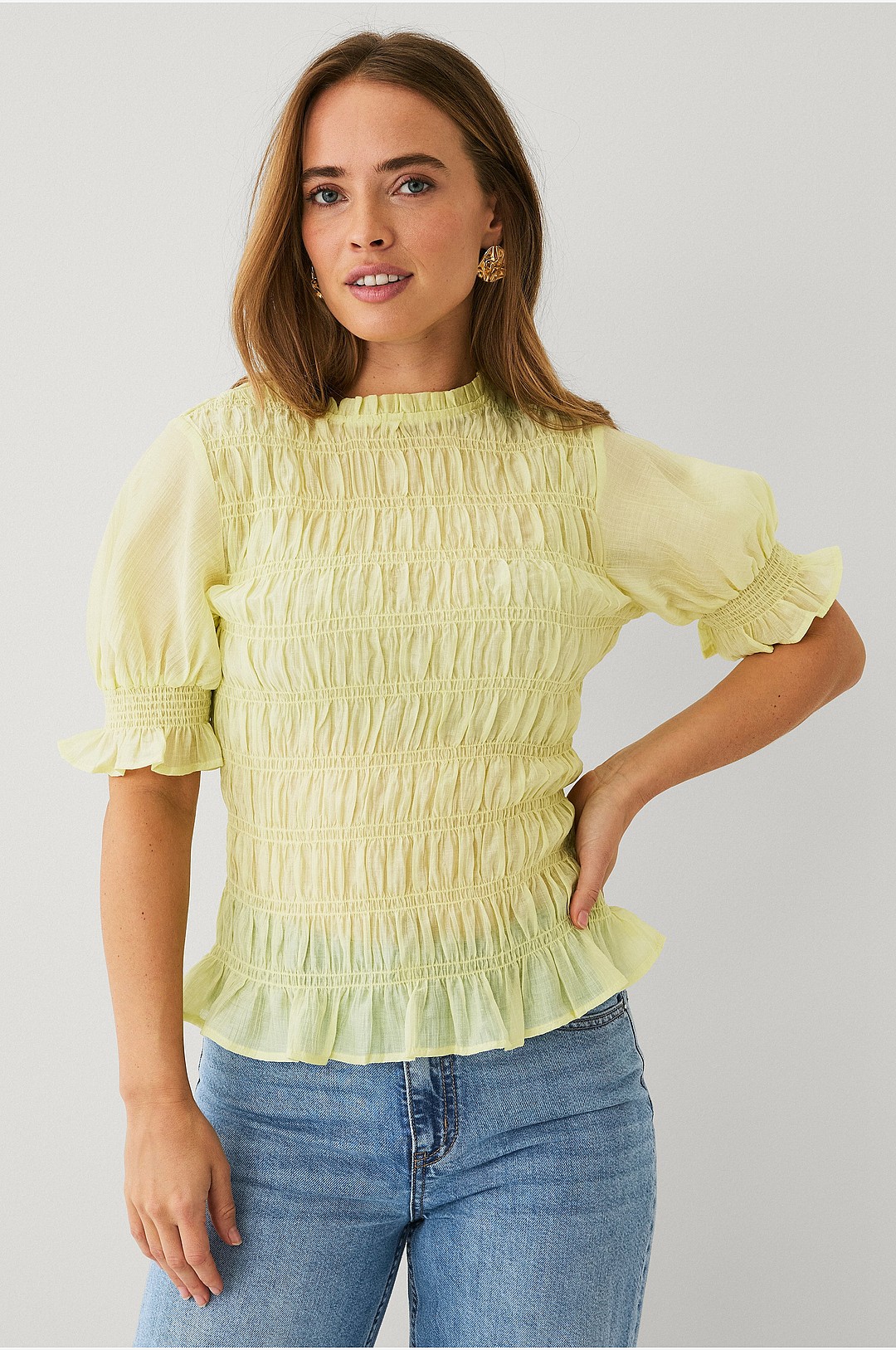 Ellos Collection - Bluse med smokk og pufferme - Gul