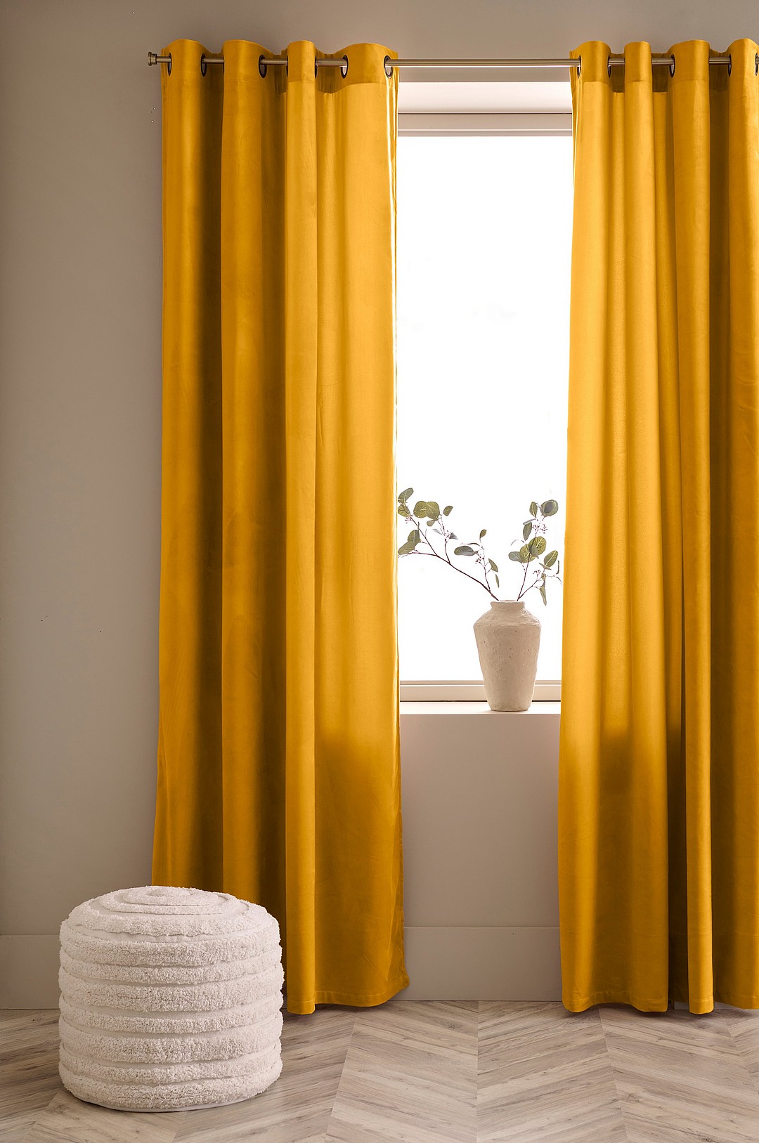 Ellos Home - Gardiner med maljer Nora i fløyel 2-pk - Gul