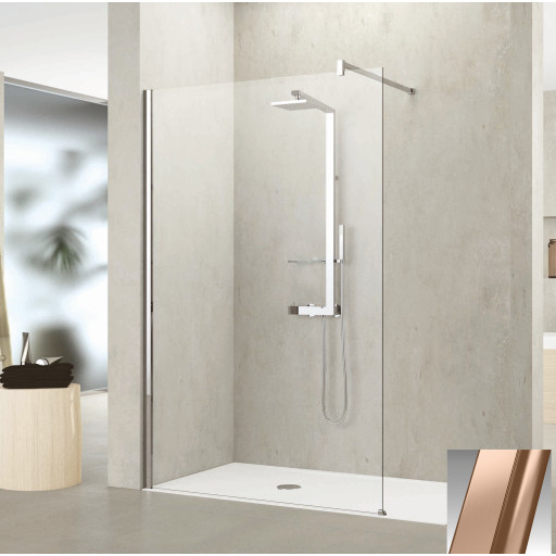Novellini Kuadra H fastvegg, 107-110 cm, klart glass, børstet kobber profil