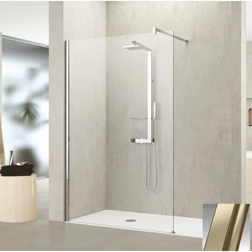 Novellini Kuadra H fastvegg, 27-30 cm, klart glass, messing profil