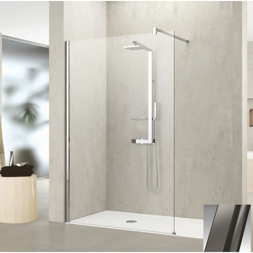 Novellini Kuadra H fastvegg, 27-30 cm, klart glass, børstet grafitt profil