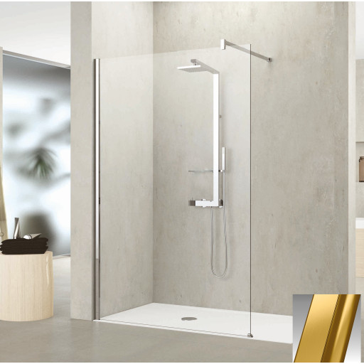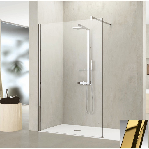 Novellini Kuadra H fastvegg, 107-110 cm, klart glass, messing profil