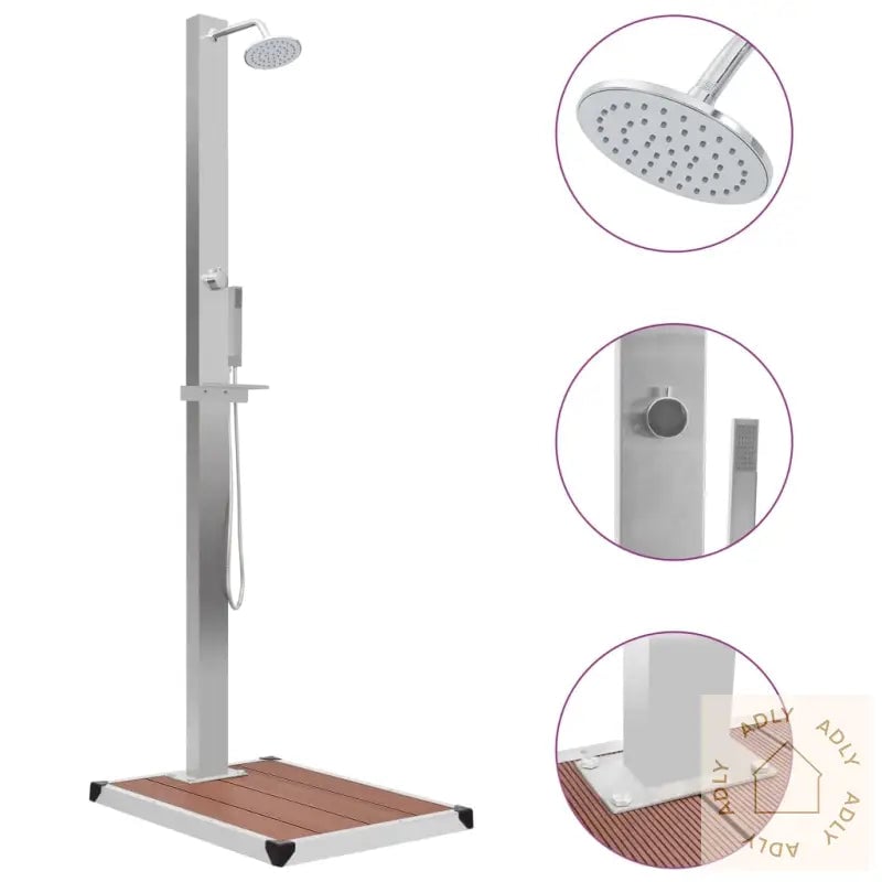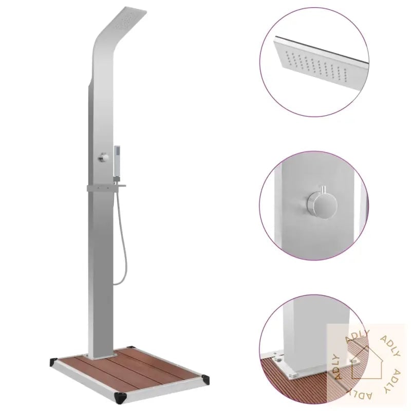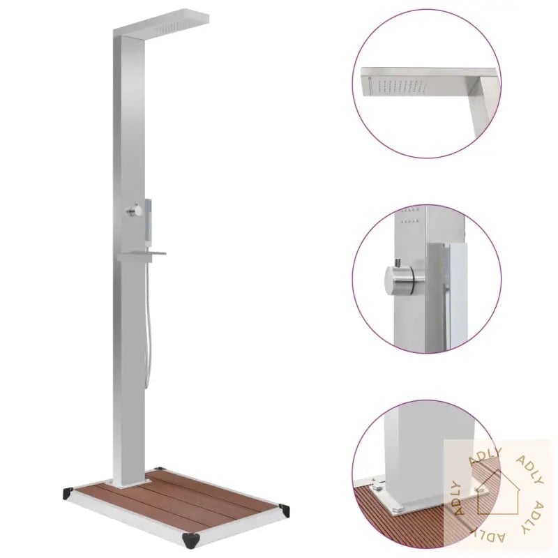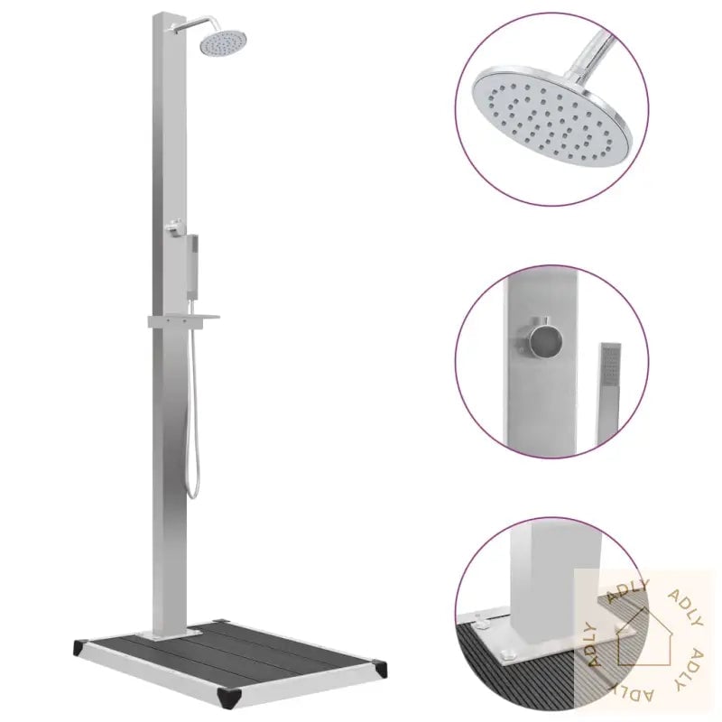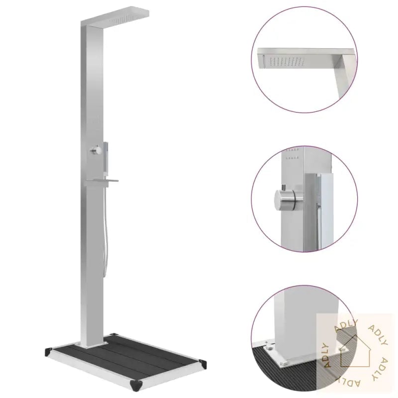 Moderne utendørs hagedusj i rustfritt stål til basseng og hagemøbler