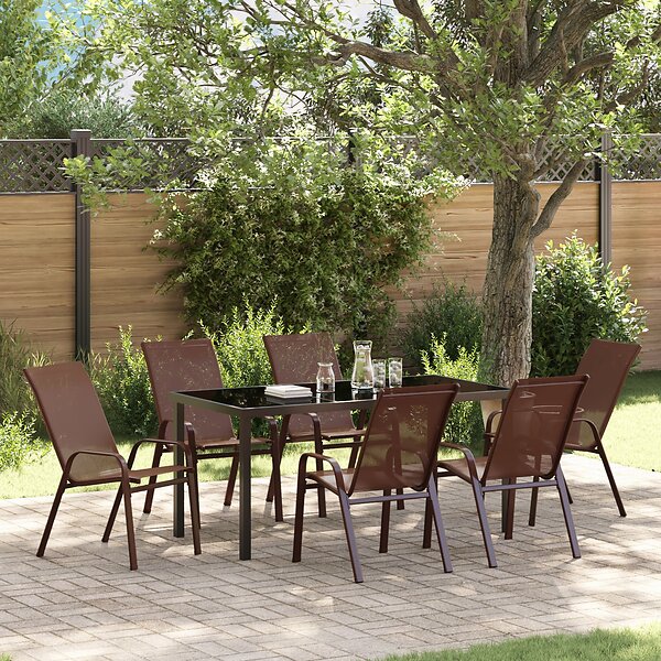 vidaXL 7-seters hagemøbelsett Textilene and Steel Brun