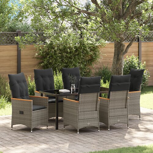 vidaXL 7-delt hagemøbelsett med puter Grå Poly Rattan